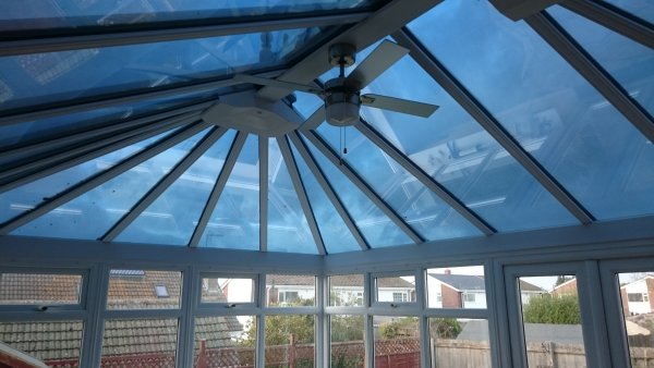 Dual 15 solar window film applied to conservatory glass roof in Weston-super-Mare